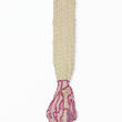 twisted III, 2025, gewebe, kunsthaar, 69 x 22 x 3 cm